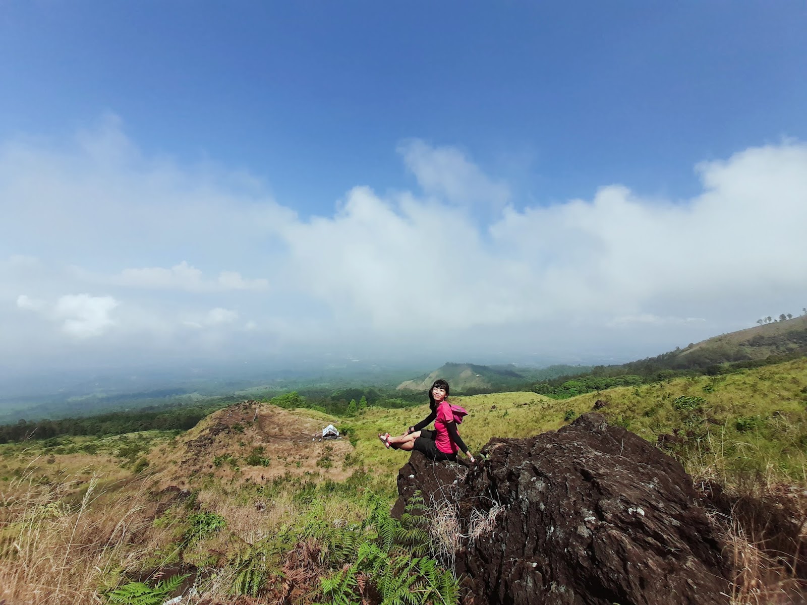 Dari sisi samping warung atau dari Watu teratas, kita bisa melanjutkan naik ke watu-watu yang lebih tinggi, hanya sekitar 5 menit berjalan -meskipun nanjak terus- atau bisa mengambil arah kanan ke Pos 2 Pendakian Gunung Arjuno via Lawang lalu lanjut ke Bukit Lincing. Aku tidak lanjut ke Lincing saat itu karena sudah pernah ke Lincing sih, dan lagi panas banget.. teman-teman sudah ogah.. Jadi akhirnya kami ambil arah naik ke batu di atas saja.